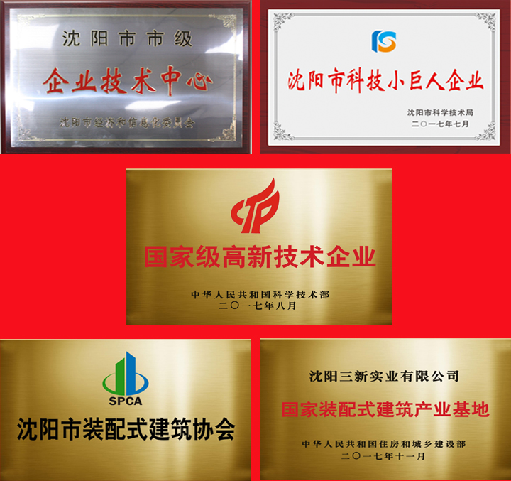 春華秋實,2017年是三新集團(tuán)豐收的一年,借力國家創(chuàng)新戰(zhàn)略的成功實施,集團(tuán)業(yè)務(wù)長足發(fā)展,實力與日俱增。集團(tuán)相繼獲得國家科技部授予的“高新技術(shù)企業(yè)”、沈陽市高新技術(shù)和科技小巨人“雙培育”企業(yè)、“國家裝配式建筑產(chǎn)業(yè)基地”和“全國科技低碳鋼結(jié)構(gòu)產(chǎn)業(yè)示范基地”、沈陽市“重合同守信譽”單位。三新集團(tuán)的技術(shù)研發(fā)中心被評為市級企業(yè)技術(shù)中心。三新集團(tuán)產(chǎn)品被列入《遼寧省重點推廣應(yīng)用工業(yè)產(chǎn)品目錄(2017年版)》、沈陽市重點工業(yè)優(yōu)質(zhì)產(chǎn)品名錄。