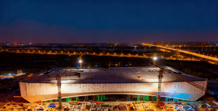 秋碧如洗的渾河之畔,“云上冰玉” 正以出水芙蓉之姿亭亭玉立。這座總建筑面積達(dá) 26.38 萬平方米的冰上巨構(gòu),將 “城市與自然共生” 的理念凝于鋼筋鐵骨,其中 13.57 萬平方米的國家速滑館更以流線型弧面勾勒出渾河的靈動(dòng) —— 空中俯瞰,三新實(shí)業(yè)打造的屋面恰似鎏金鳳冠,在北國陽光下流轉(zhuǎn)著技術(shù)與藝術(shù)交融的光芒。